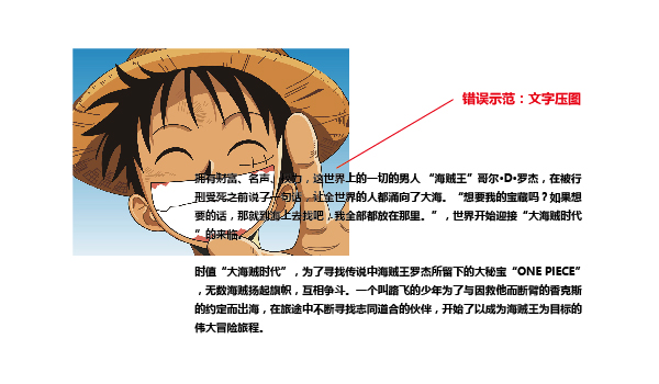 8.保證圖像不壓文字或者文字不壓圖片(在有些排版軟件中,進行拼版或圖象的重新置入等操作時,圖文互斥經(jīng)常會失效,從而使圖象壓在文字上);保證文字在底圖上的清晰度(當(dāng)文字壓在相近顏色的底圖上時,要注意加陰影或勾邊等修飾)。
